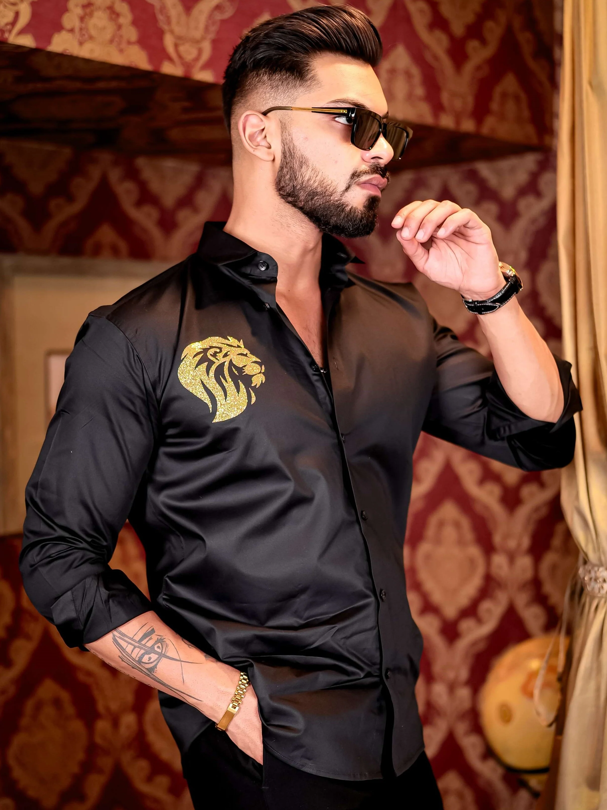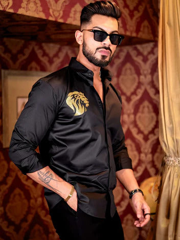 Pair the Obsidian Sovereign Crest Shirt with tailored trousers or dark denim and loafers for a confident, effortless statement that transitions seamlessly from day to night.